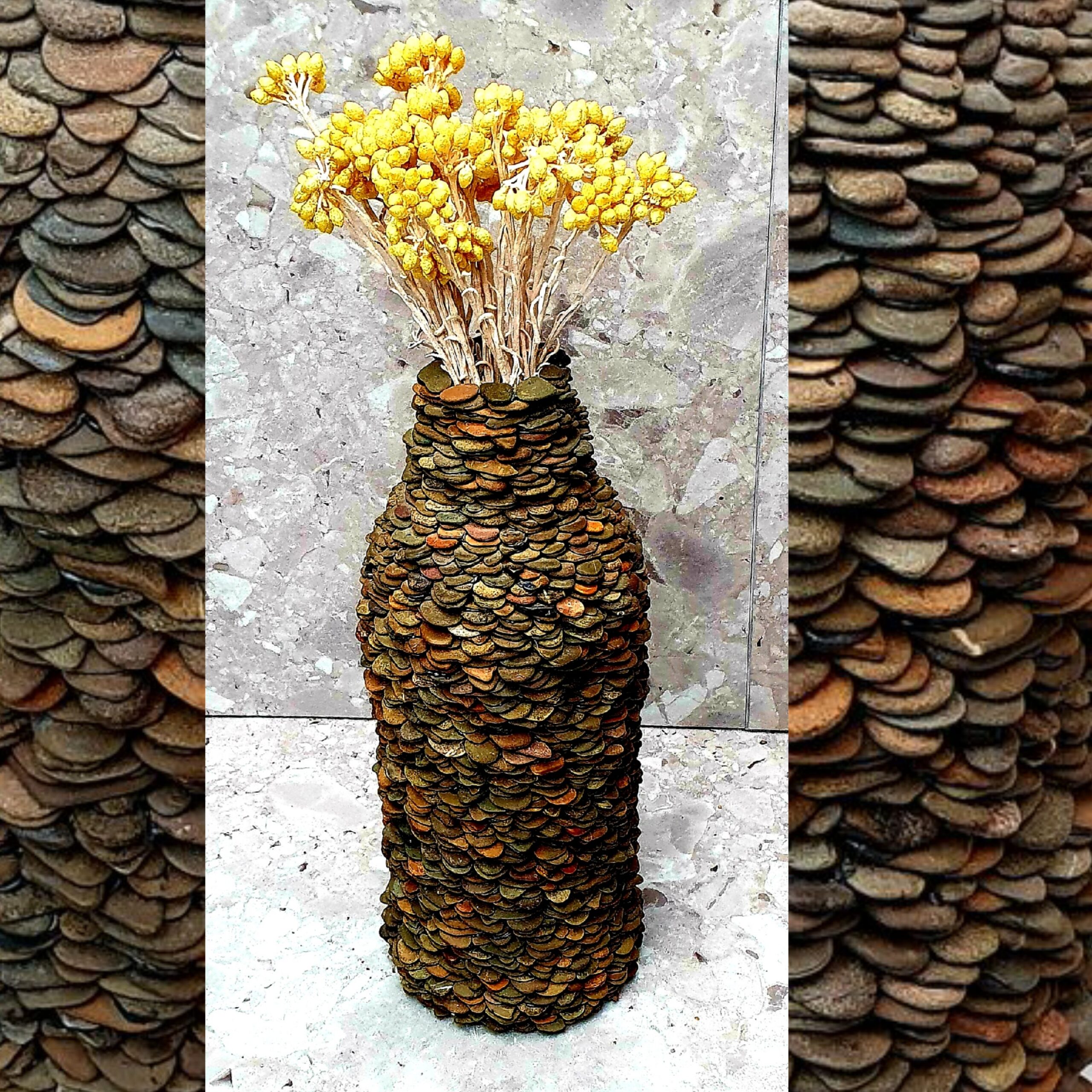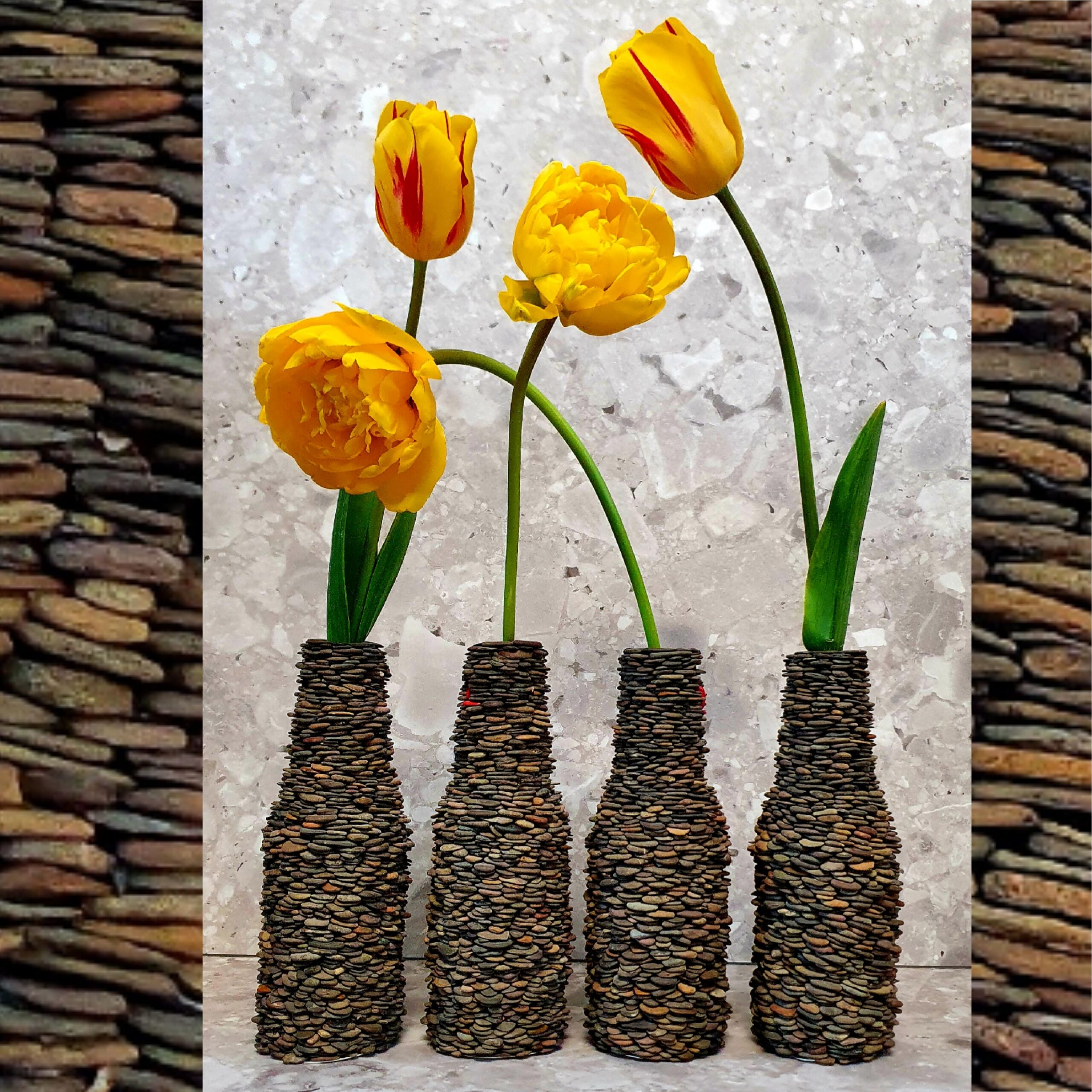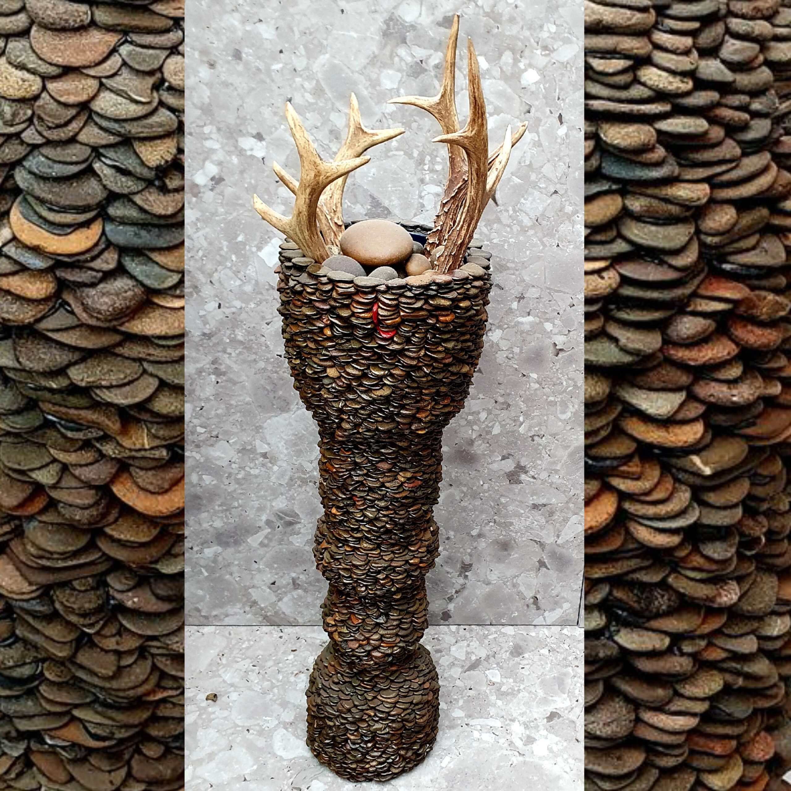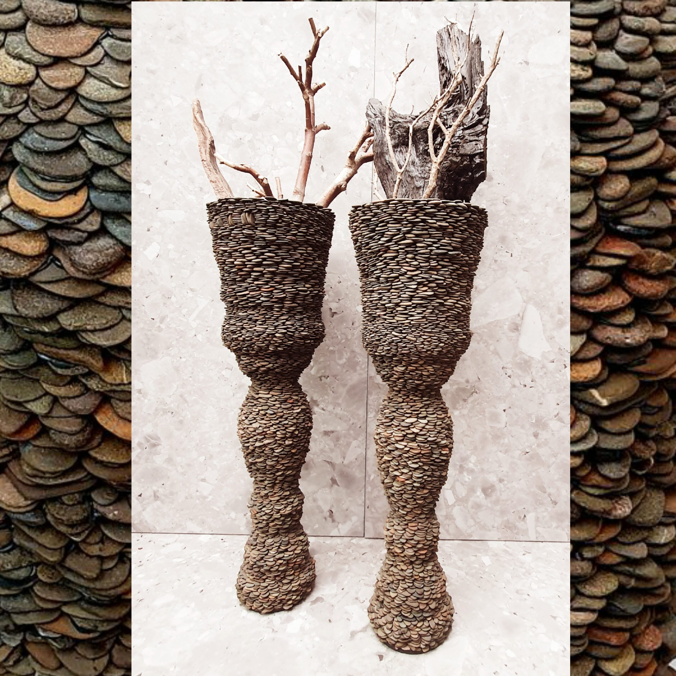 Mijn doel is jou te verbluffen met deze natuurstenen kunstwerken die opgebouwd zijn uit honderden, duizenden kleine platte riviersteentjes. Steentjes die ook een reis maakten, die geslepen zijn door water, zand en tijd. Deze steentjes zijn eerst verzameld langs de rivier (Waal), daarna uitgezocht, op maat gesorteerd om daarna uiteindelijk één voor één geplakt op een ander decor. Ik begrijp nu veel beter de begrippen engelengeduld en monnikenwerk. Maar het is fantastisch om langzaam een inspirerend kunstwerk onder je handen te zien verschijnen. De harmonie en rust van de natuur in optima forma. Kunst en natuur gaan hand in hand.